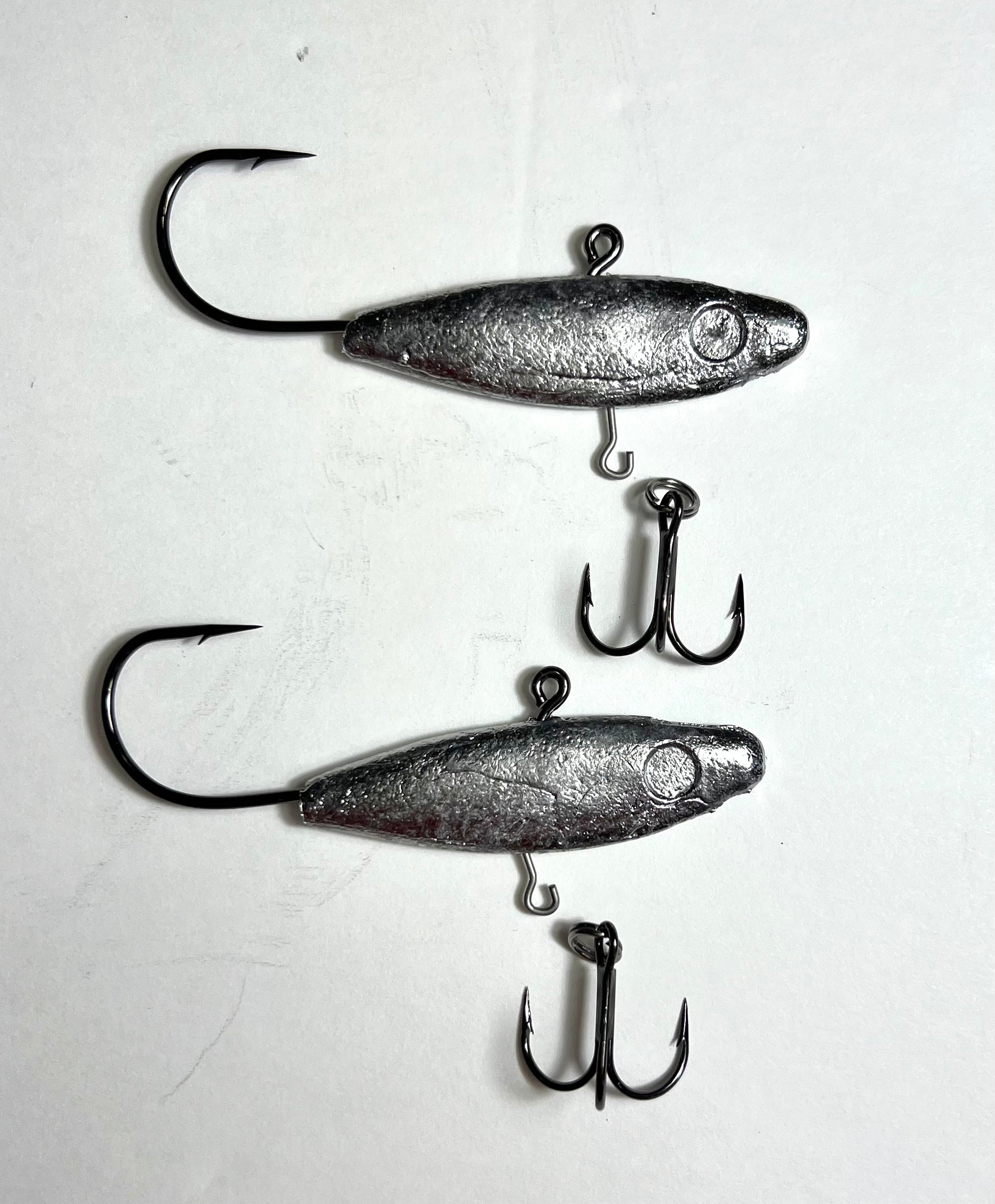 •(2) 1-1/2 oz Pro Series Minnow jig head with Treble Trailer